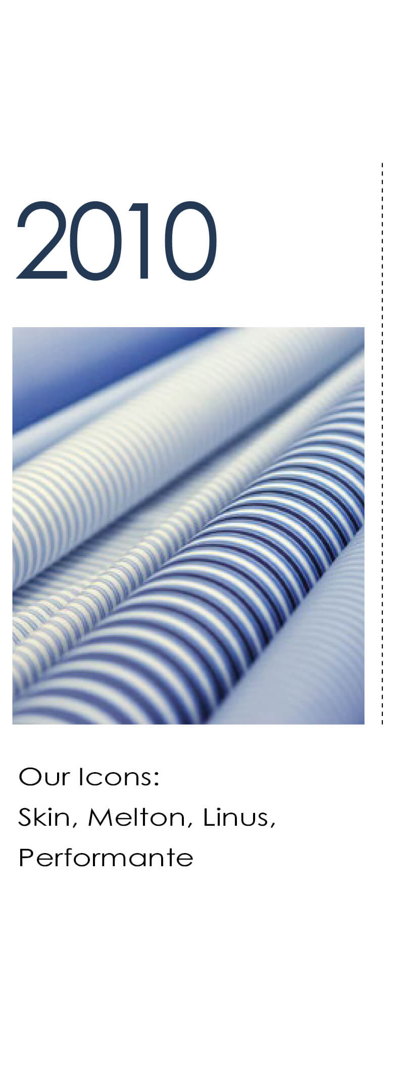 The products range from the finest cotton to technical and Man Made fibers, from wool to linen; from prints to piece-dyed; from yarn-dyed to jacquard and finally to knitwear. We can’t miss indigo and denim which includes inter-generational fabrics with different weights.
